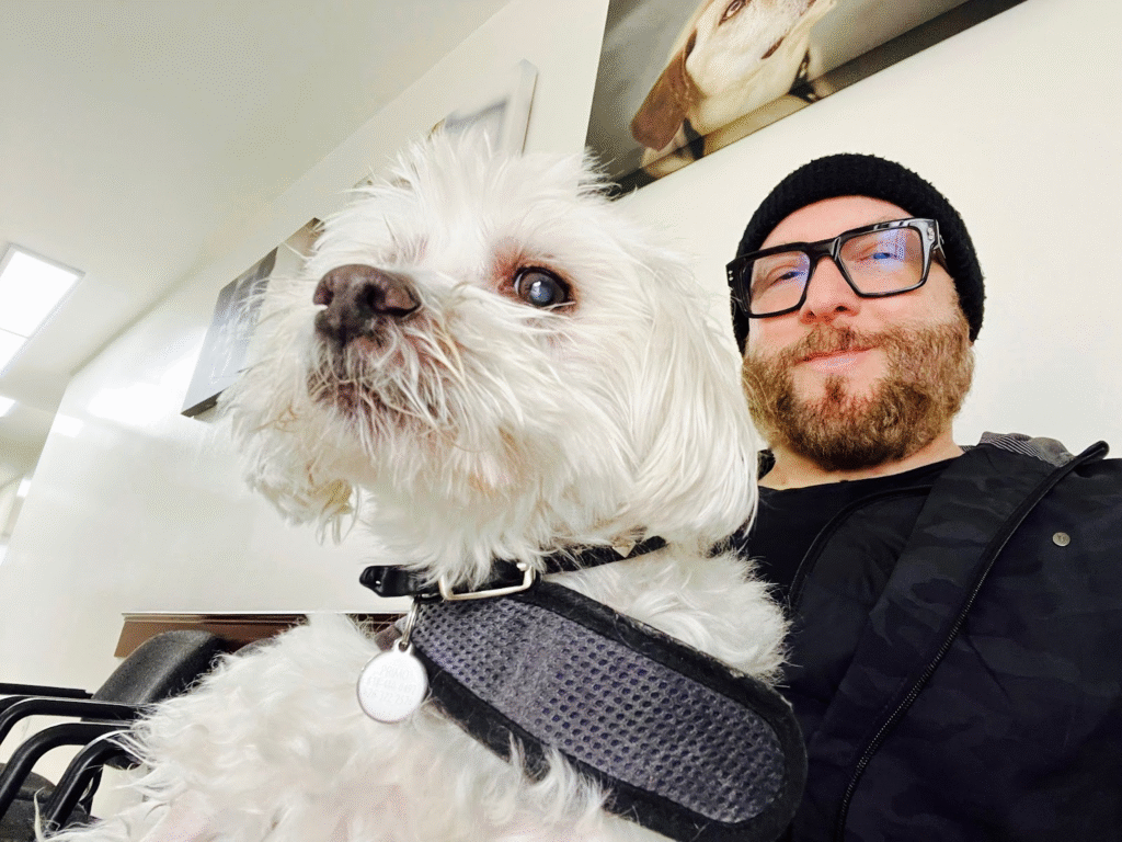 But now, alas, my poor little 17-year-old pup has passed away, so I’m writing only for myself at the moment. But here is a favorite picture of us. He was a wonderful and inspirational little guy. I miss him.